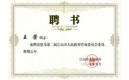 喜訊:我司董事長王榮受聘為江山市人民政府咨詢委員會委員