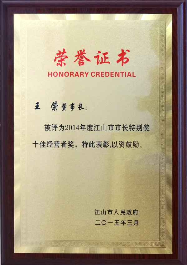喜訊:王榮董事長(zhǎng)被評(píng)為2014年度江山市市長(zhǎng)特別獎(jiǎng)十佳經(jīng)營(yíng)者獎(jiǎng)