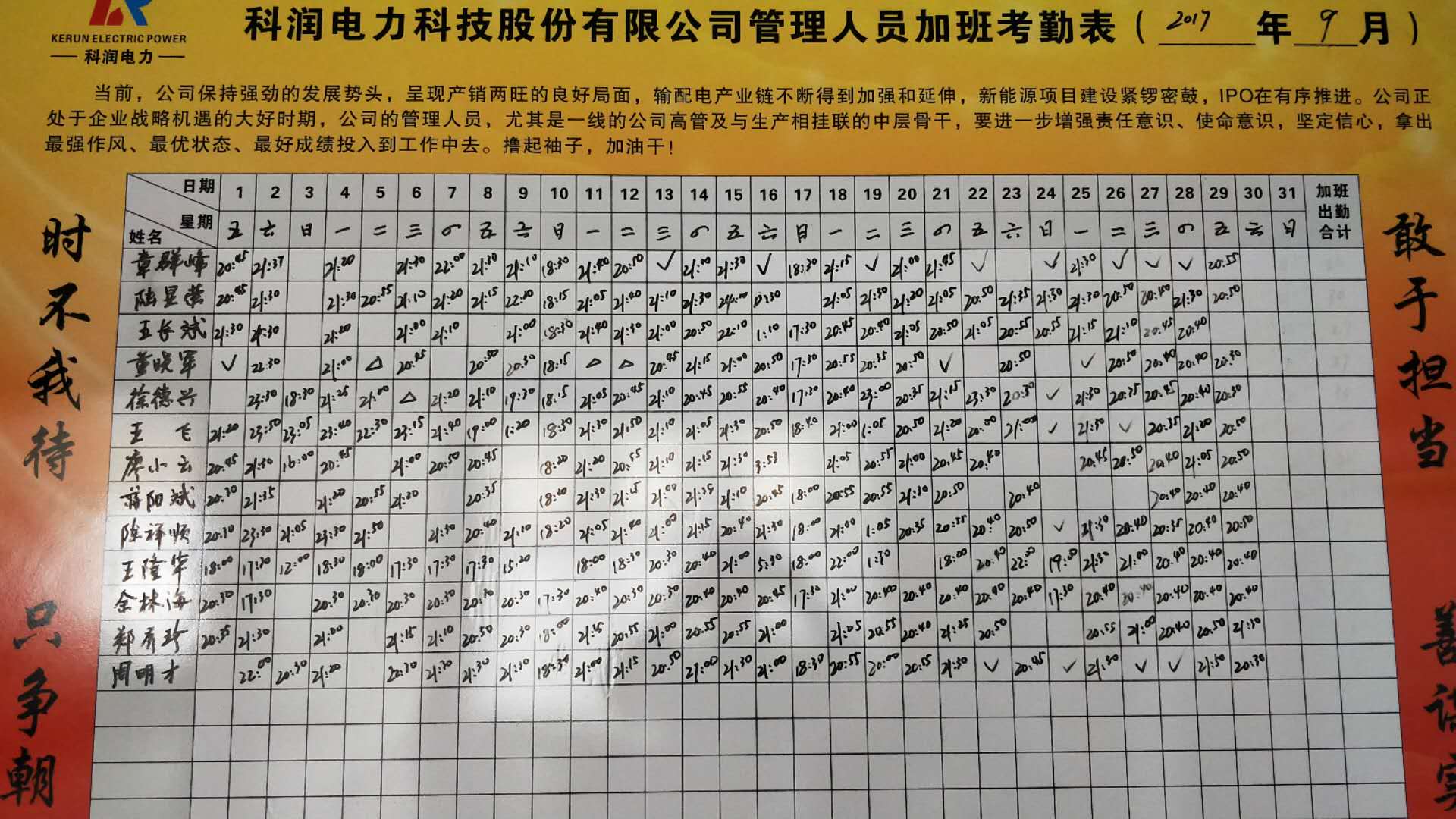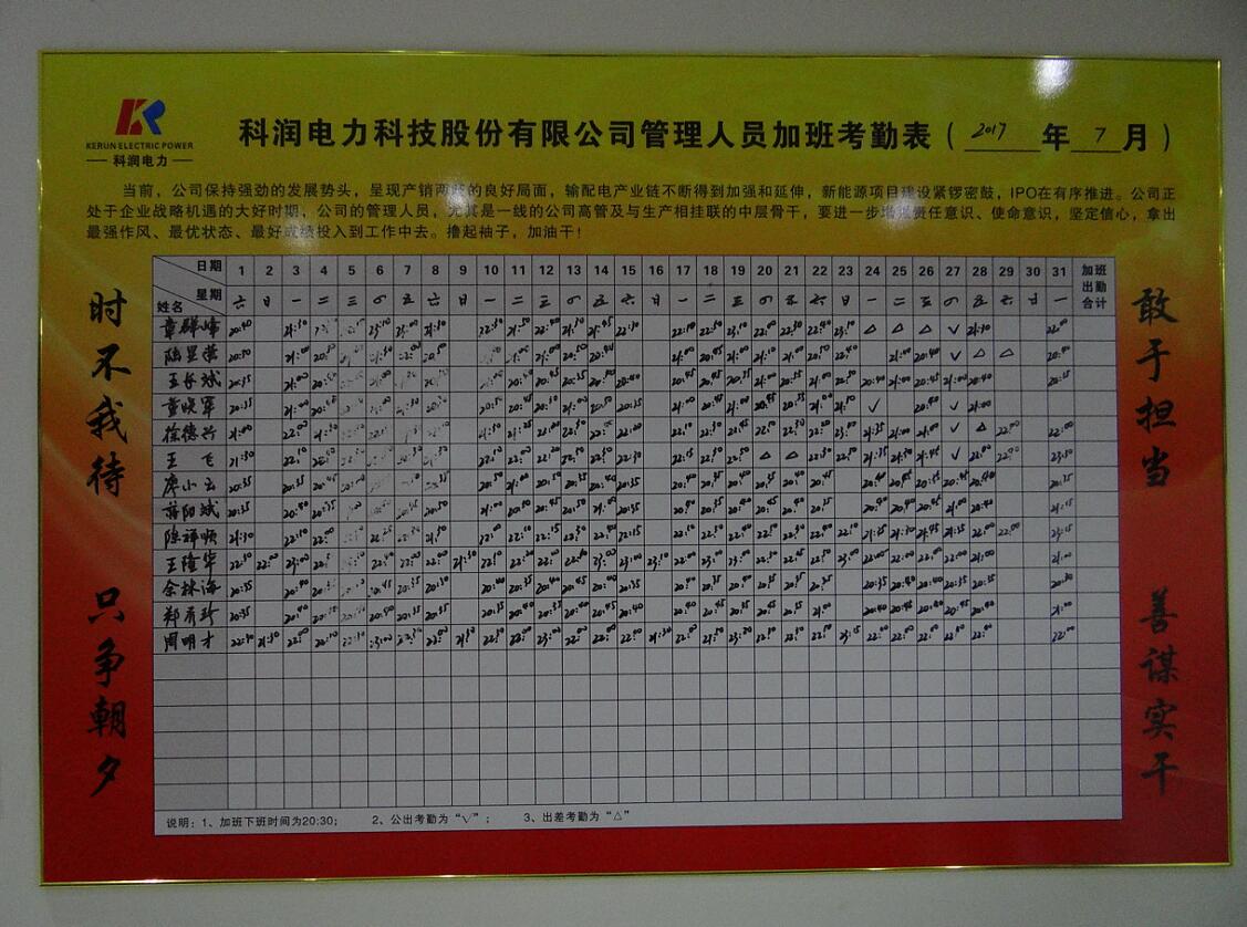 7月份,根據(jù)董事長的指示,公司出臺了22號文件,要求公司管理人員,尤其是一線的公司高管及生產相掛聯(lián)的中層骨干,要加強責任意識,倡導發(fā)揚“白加黑”、“六加一”、“拼命三郎”的敬業(yè)奉獻精神。