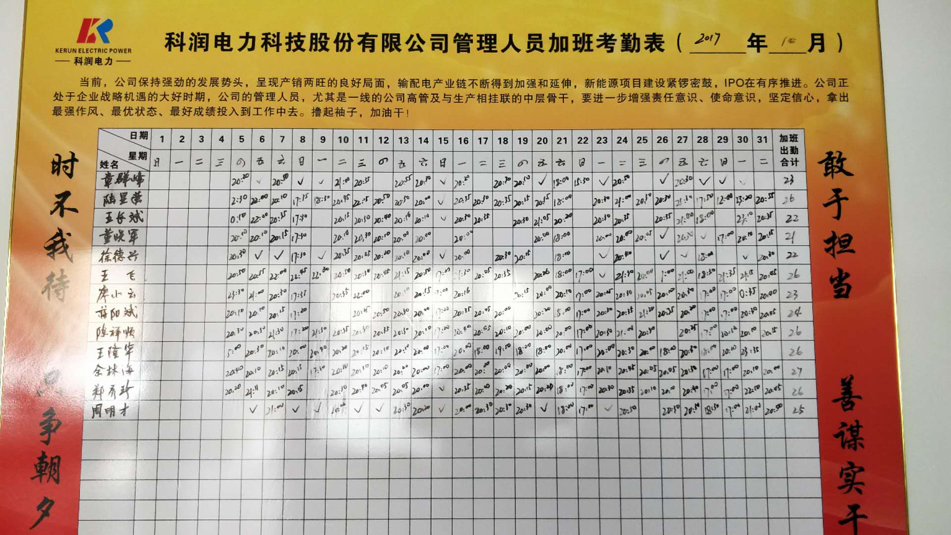 董事長由衷肯定:自“白加黑”、“六加一”開展以來,大家積極參與,工作行之有效,成績顯著。同時要求,大家要繼續(xù)發(fā)揚這種精神,不斷規(guī)范管理行為,努力工作。