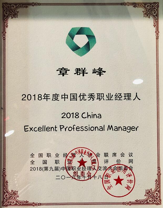 ☆官宣☆ 公司總經(jīng)理章群峰榮獲2018年度中國優(yōu)秀職業(yè)經(jīng)理人
