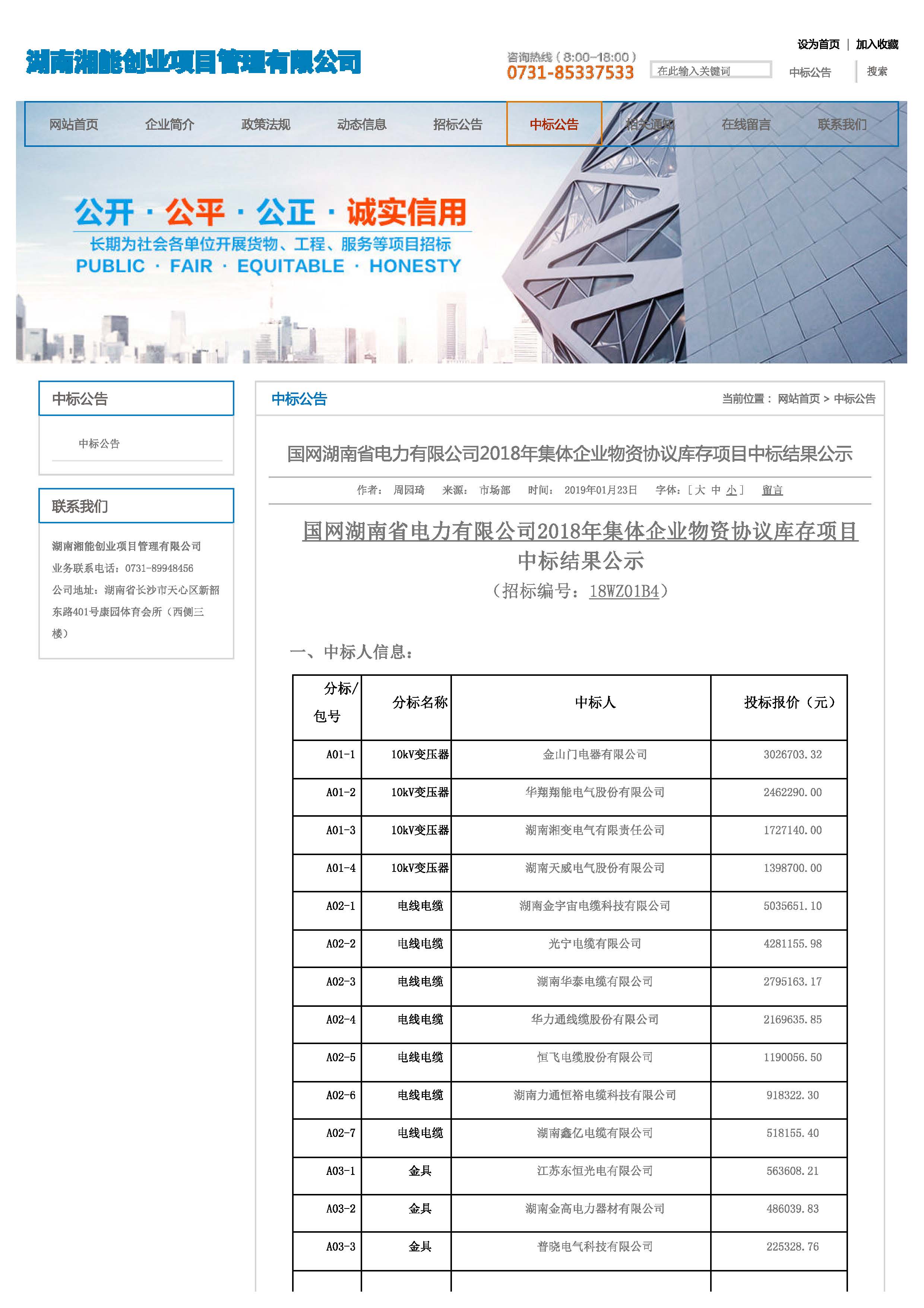 1、國網(wǎng)湖南省電力有限公司2018年集體企業(yè)物資協(xié)議庫存項目,中標(biāo)金額:16882781.52元。