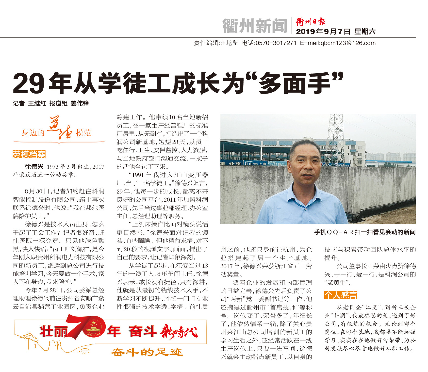 》中衢州新聞版塊關于公司總經理助理徐德興的報道。