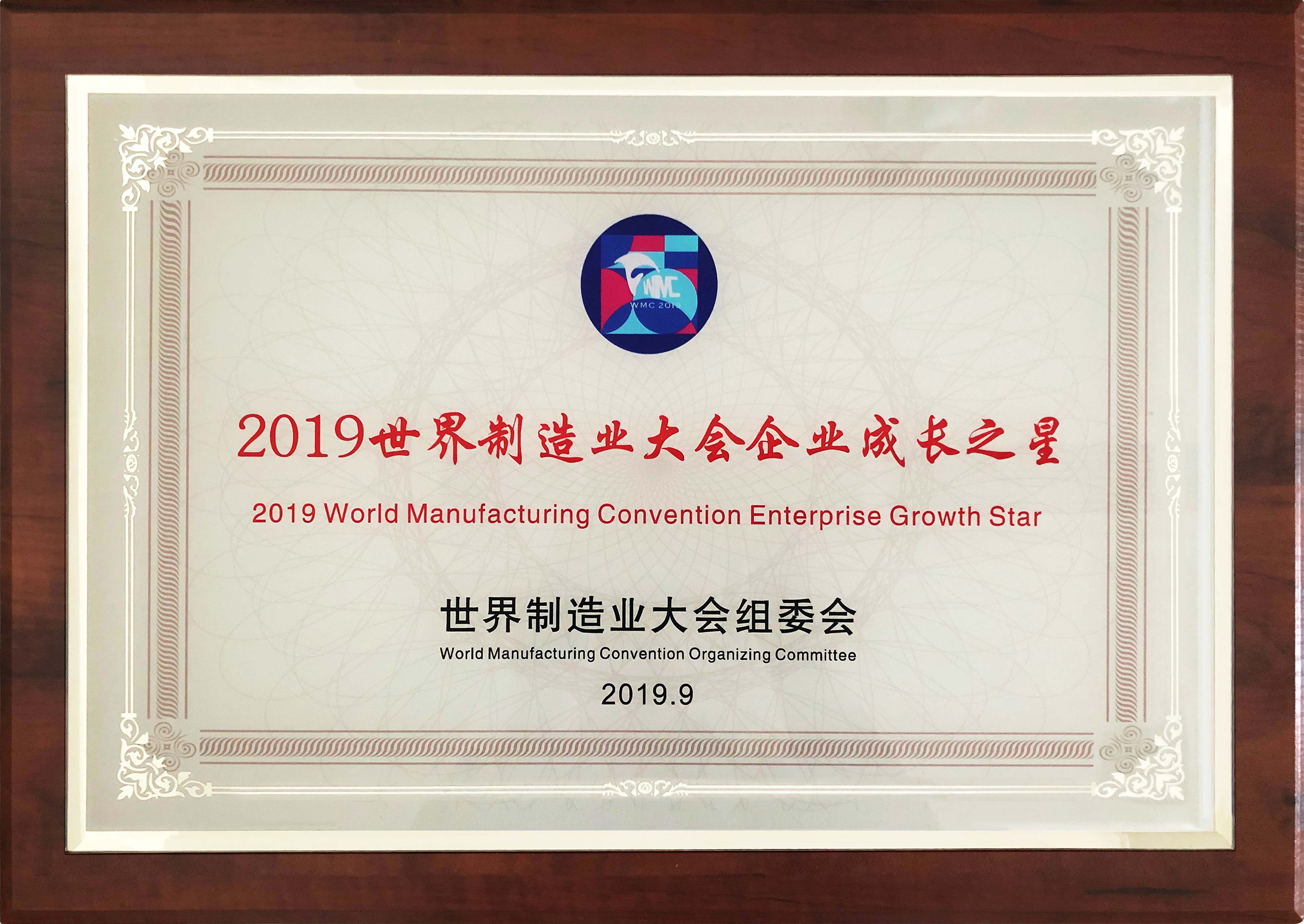 我司榮獲2019世界制造業大會 “企業成長之星” 榮譽稱號