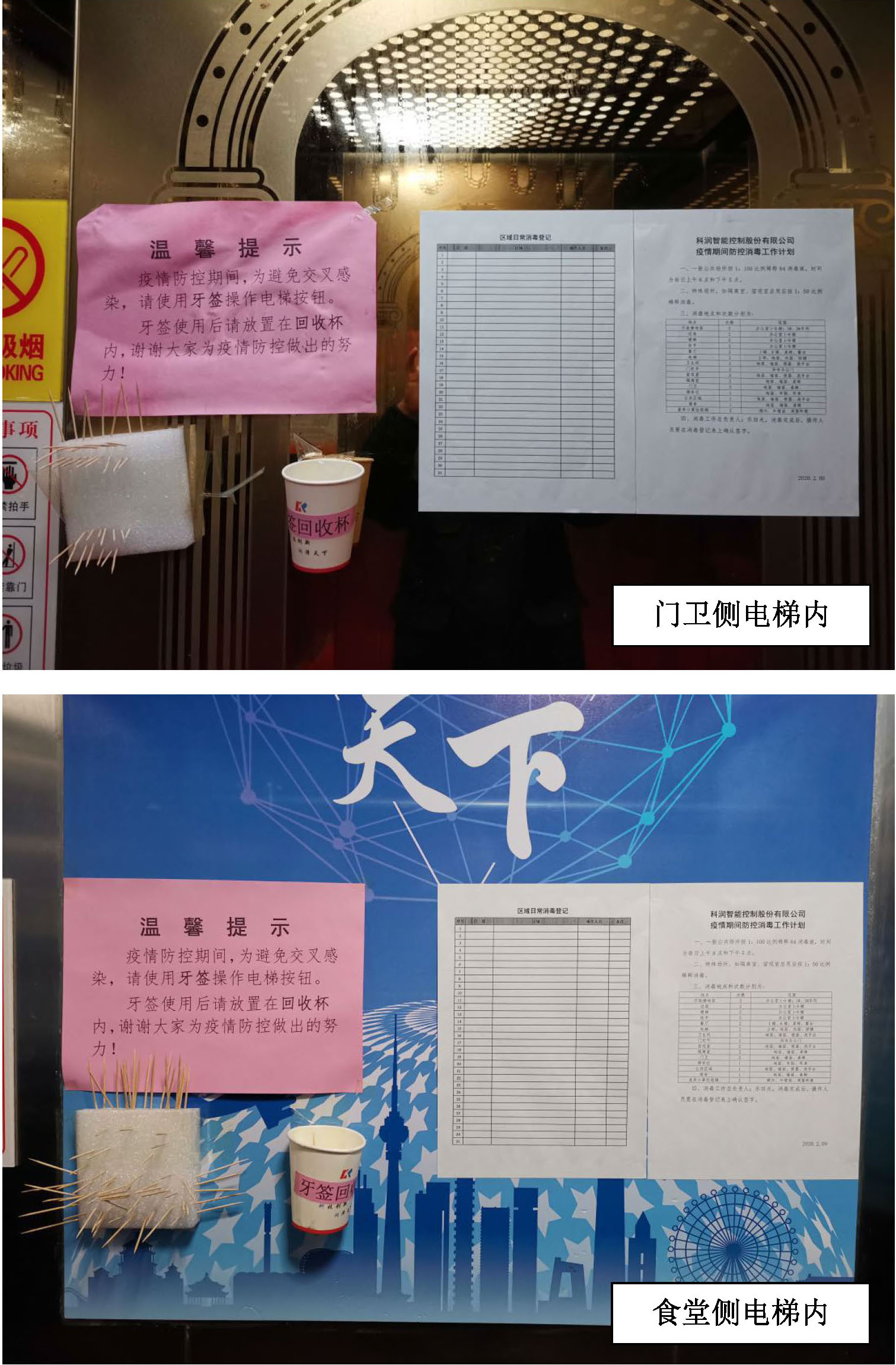 △ 公司兩部電梯內(nèi)放置了牙簽,避免員工乘坐電梯直接觸手。