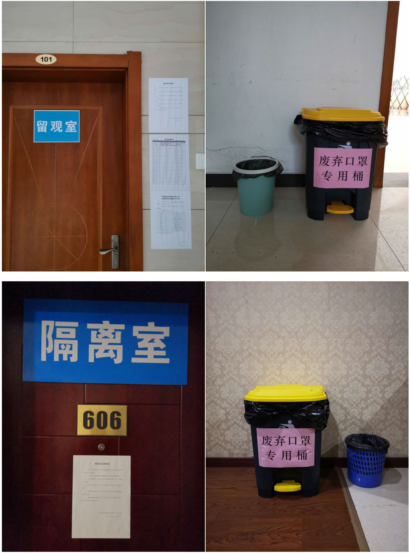 △ 公司專門設(shè)立了留觀室(101)和隔離室(606)備用,張貼了相關(guān)的留觀室、隔離室的注意事項(xiàng),并放置了“廢棄口罩專用桶”,與普通生活垃圾桶區(qū)分開(kāi)。