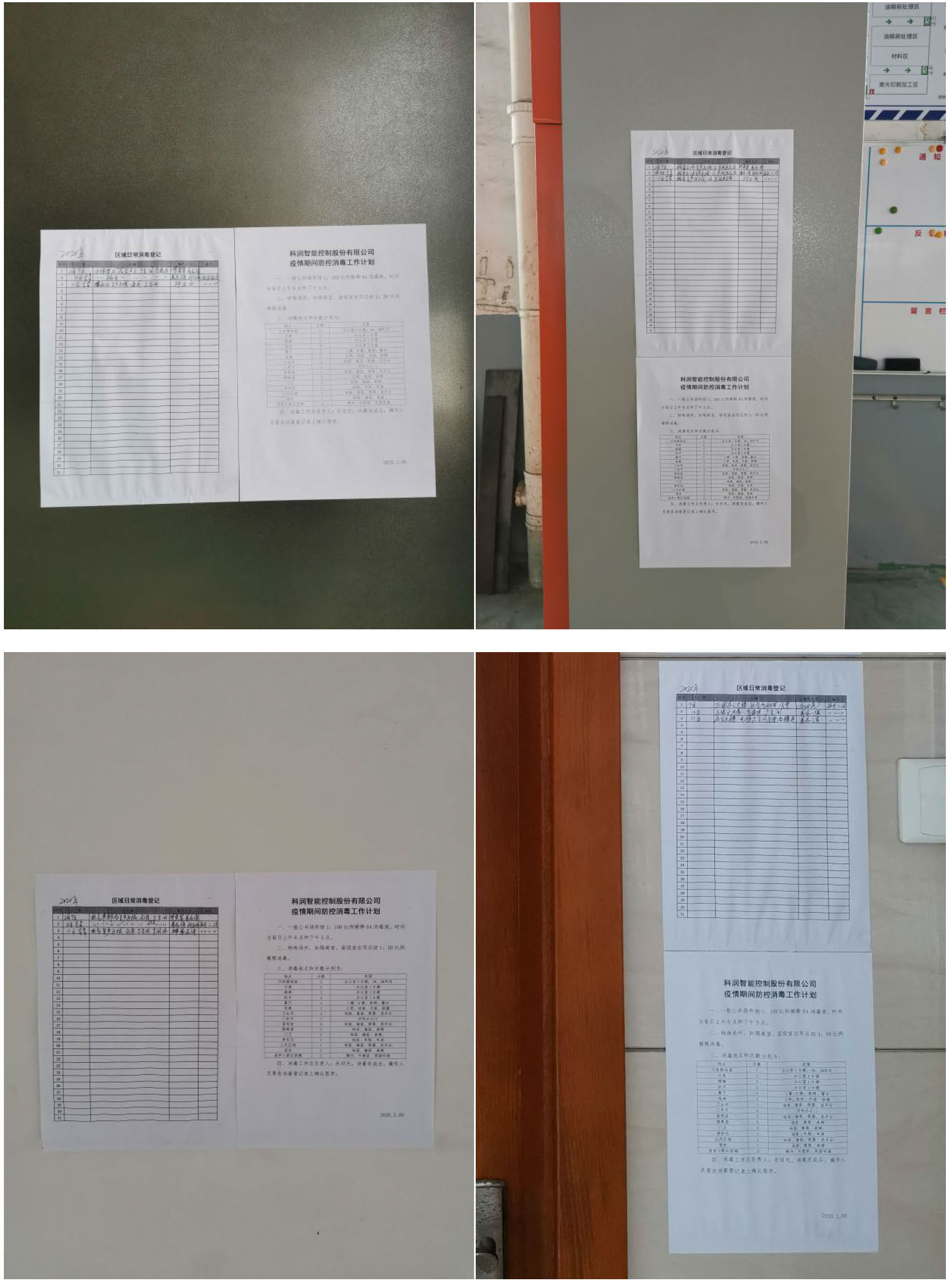 △ 公司制定了防疫期間防控消毒工作計(jì)劃,針對(duì)整個(gè)公司的公共場(chǎng)所進(jìn)行,每日兩次的消毒。