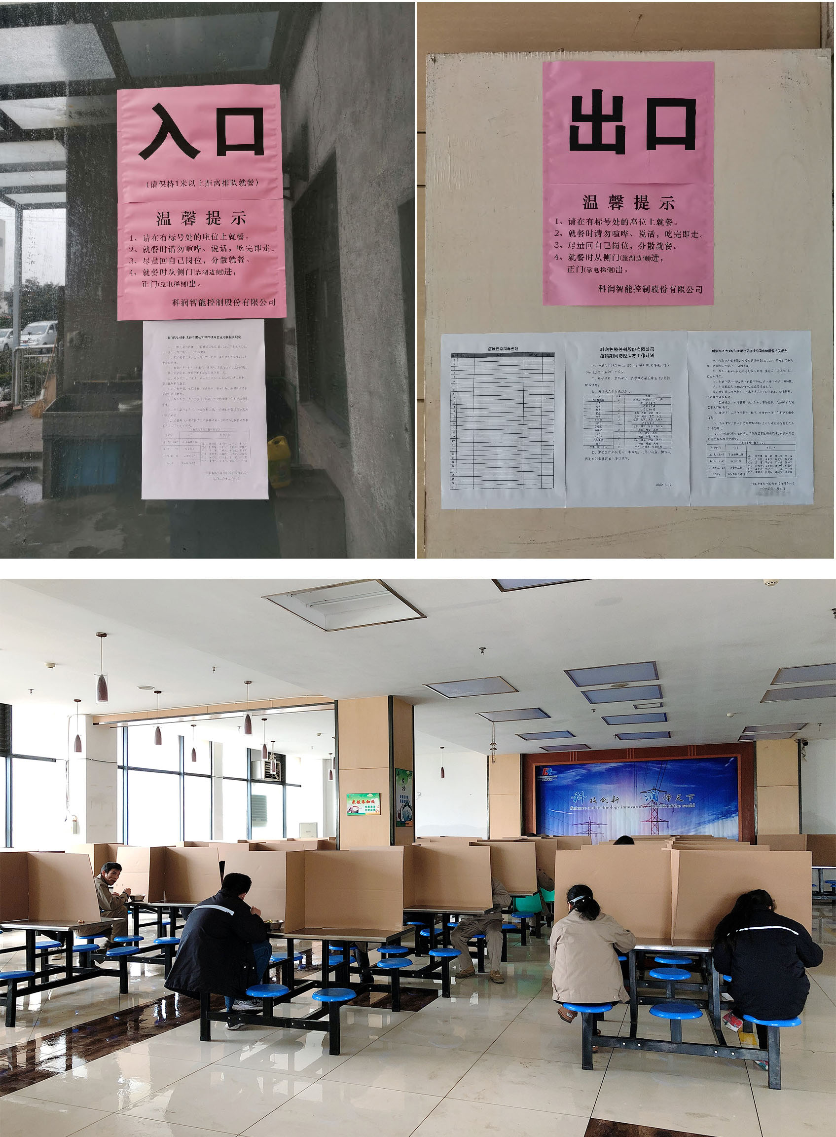 △ 公司同時(shí)制定了防疫期間食堂用餐的相關(guān)規(guī)定,用餐時(shí)側(cè)門進(jìn)、正門出,分批次用餐,一桌一人按標(biāo)號(hào)用餐……