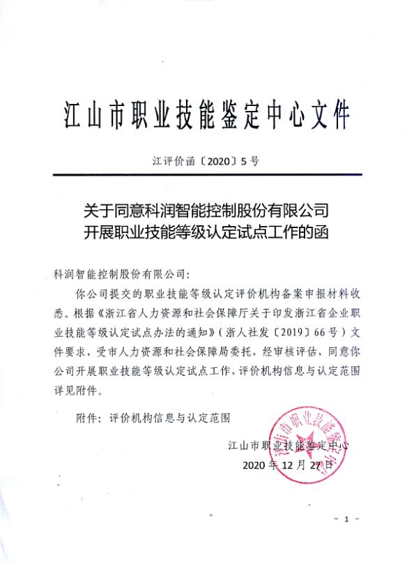 熱烈祝賀我司獲準(zhǔn)開展江山市職業(yè)技能等級認(rèn)定試點工作