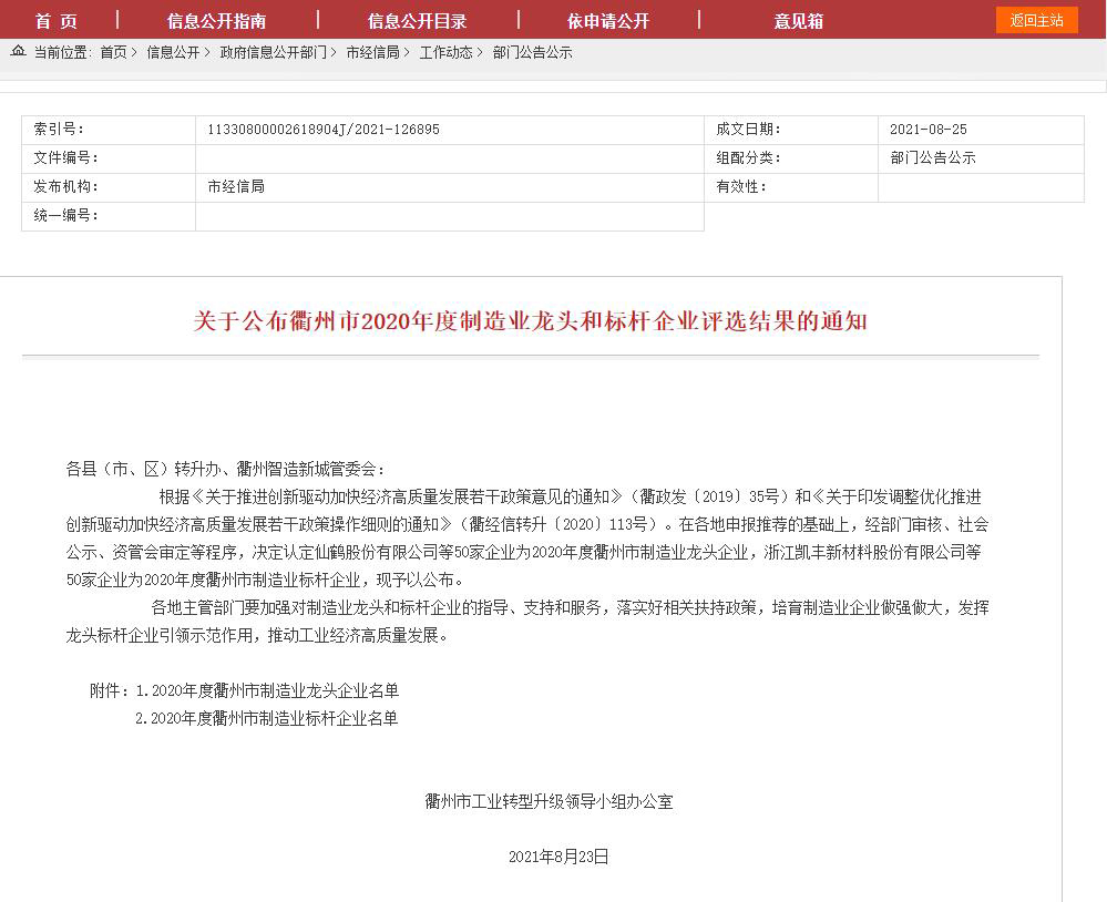熱烈祝賀科潤智控獲評2020年度衢州市制造業龍頭企業
