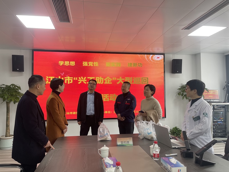 12月14日上午,江山市政協(xié)副主席何正芳蒞臨公司考察指導(dǎo),何主席看望了江山市人民醫(yī)院來司義診的醫(yī)護(hù)人員,并慰問了正在參加義診的公司員工。江山市人民醫(yī)院黨委書記柴曉東,公司總經(jīng)理章群峰等領(lǐng)導(dǎo)陪同。