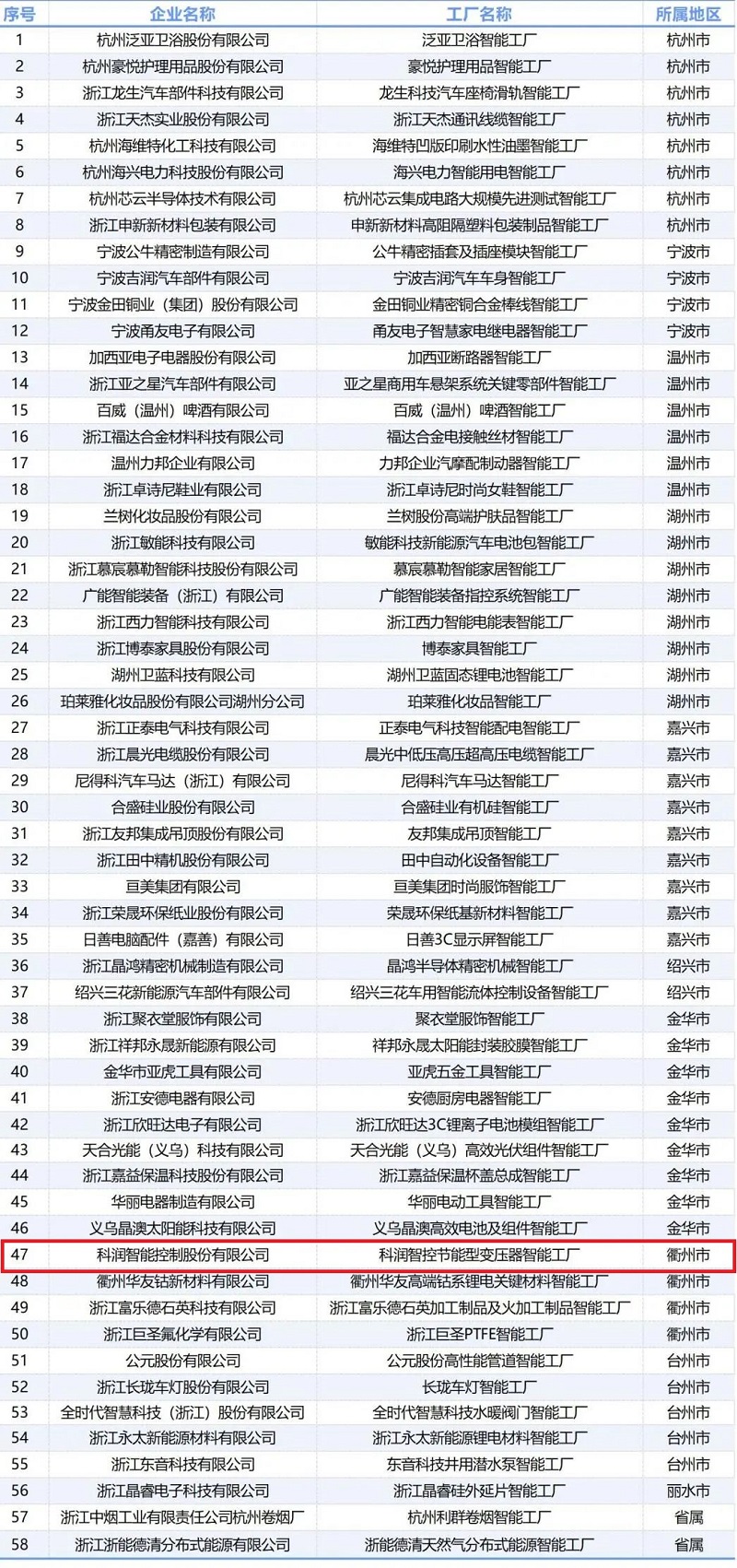 根據《關于開展2023年浙江省未來工廠和智能工廠(數字化車間)評定及首批復評工作的通知》,經企業自主申報、地方推薦和專家評審,確定“科潤智控節能型變壓器智能工廠”為省級智能工廠。