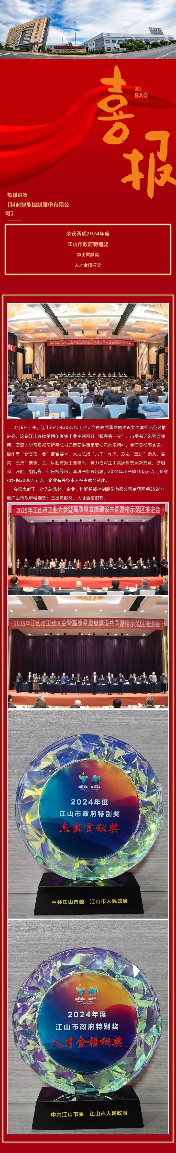 喜報|科潤智控榮獲兩項江山市政府特別獎
