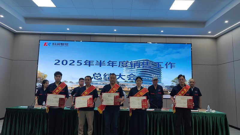 8月2日下午,科潤智控召開2025年半年度銷售工作總結大會,公司董事長王榮、相關領導、全體銷售人員、銷售內勤、法務部共計110余人參加。會前,由董事長王榮親自率隊參觀智慧新能電網裝備項目一期工程,會上總結分析了2025年上半年各項銷售數據、對銷售工作各類先進進行了表彰。